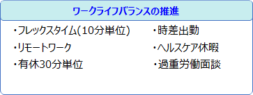 ワークライフバランス健康で豊かな生活のための時間確保を目指していきます。