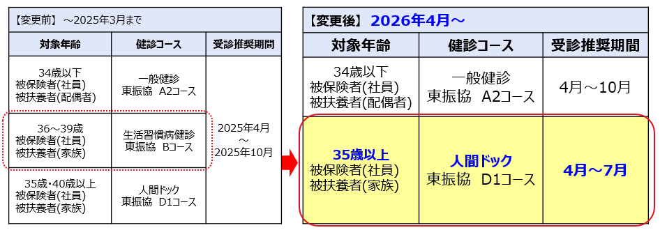 【変更内容】 35歳以上は全員、受診内容を「人間ドック」に変更